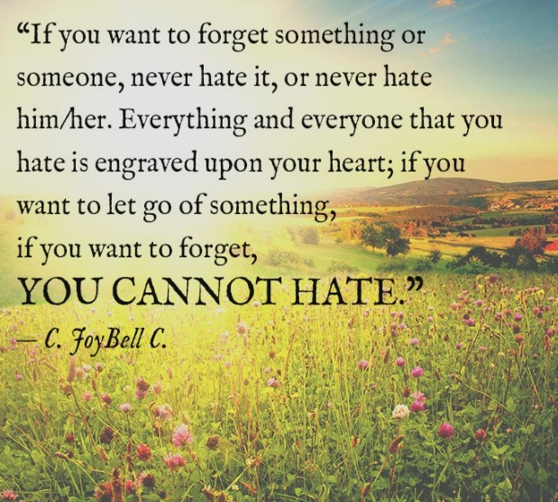 “If you want to forget something or someone, never hate it, or never hate him/her...