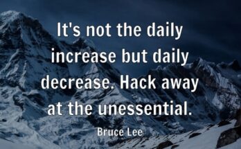 It’s not the daily increase but daily decrease. Hack away at the unessential. By Bruce Lee This quote by Bruce Lee, “It’s not the daily increase but daily decrease. Hack away …